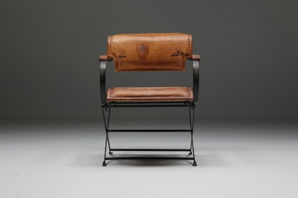 Postmodern Leather Metal Armchair 1990s For Sale At Pamono